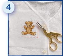 4.ปักเสร็จแล้วตัดไหมที่ใช้เนาออก